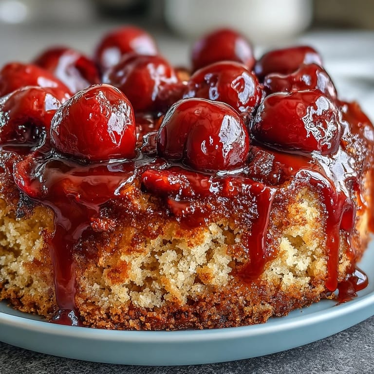 Pin it The first time I made this cherry almond upside-down cake, I wasn't prepared for the sweet scent that took over my kitchen. As the cake baked, the sticky warmth of caramelized cherries mixed with almond filled the air and had my neighbors peeking in to ask what was cooking. I remember nudging the oven door open halfway through, just to sneak another look at the bubbling fruit—trying not to get caught, because it was meant to be a surprise dessert. The anticipation felt both exciting and a little mischievous. By the time the timer rang, I was ready to flip the cake and reveal if all had gone as planned.