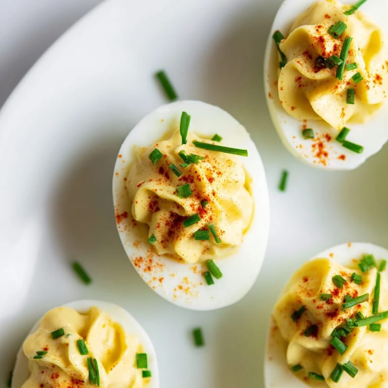 Pin it The kitchen counter was cluttered with serving bowls and half-chopped vegetables when my sister leaned over my shoulder and asked if I was making those eggs again. I had forgotten how seriously my family takes deviled eggs at gatherings until that moment. They vanish faster than anything else on the table, and I have learned to double the recipe if certain relatives are coming over. Something about that creamy filling and dusting of paprika makes people reach without thinking. Now I keep hard-boiled eggs in the fridge just in case.