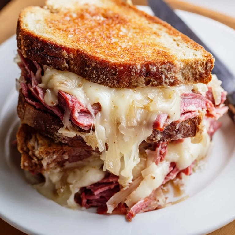 My friend taught me to quickly pan fry the sauerkraut in a little butter before building the sandwiches and honestly it changed everything. The texture becomes almost like caramelized onions minus the twenty minutes of cooking time.