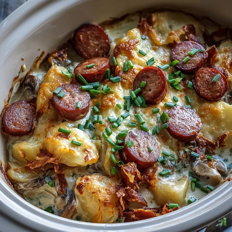 Pin it There was a moment during that first test run when I lifted the lid at the 3-hour mark and the smell hit me—kielbasa smoke, melted cheese, and the earthy notes from the mushroom sauce all at once. My husband came into the kitchen just from the scent alone, and we both stood there breathing it in like we were kids again. That's when I realized this recipe was going into permanent rotation, not because it was complicated or impressive, but because it made something so simple feel genuinely special.