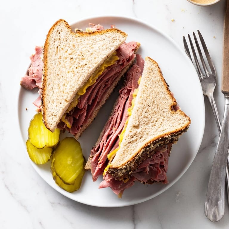 Pin it The first time I walked into a proper New York deli, the smell hit me like a warm hug. Counters piled high with meat, pickle barrels everywhere, and that unmistakable tang of mustard in the air. I watched the guy behind the counter pile pastrami higher than seemed physically possible, defying gravity with each slice. That sandwich changed how I thought about lunch forever, and now I recreate that magic at home whenever the craving strikes.