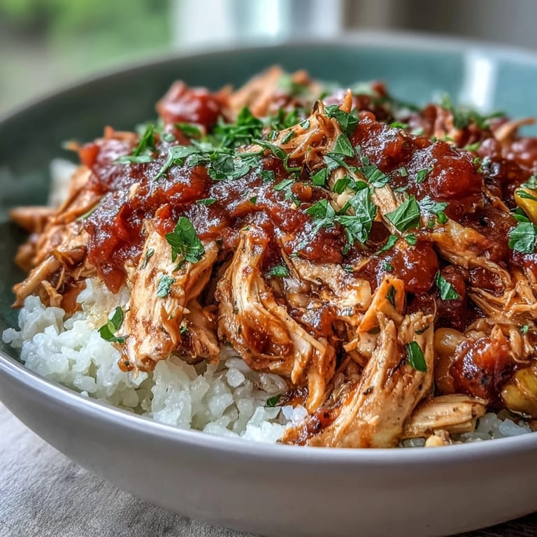 The secret to tender chicken is patience: once shredded, letting it bathe again in the salsa keeps every bite juicy. Don’t underestimate how a squeeze of lime or sprinkle of fresh cilantro finishes things — both cut through the richness and brighten the bowl.
