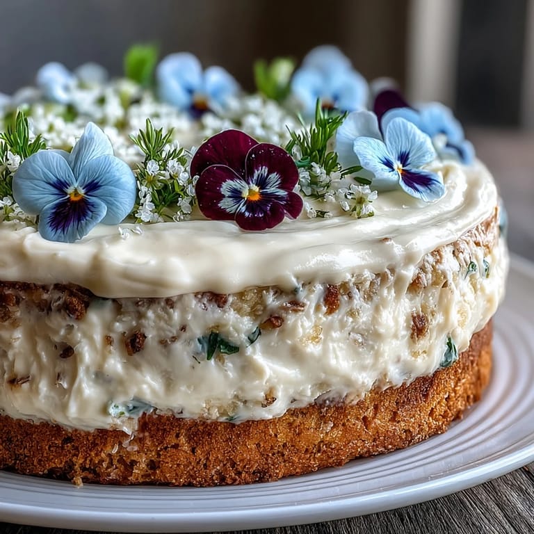 Pin it My neighbor showed up one April afternoon with a small bundle of violets from her garden, wrapped in tissue paper like they were spun gold. She mentioned wanting to do something special with them for a spring dinner party, and I found myself volunteering to bake something that could showcase them. That's when this cake came together—not from a recipe I'd memorized, but from a desire to frame those tiny purple flowers in something as delicate and fleeting as spring itself.