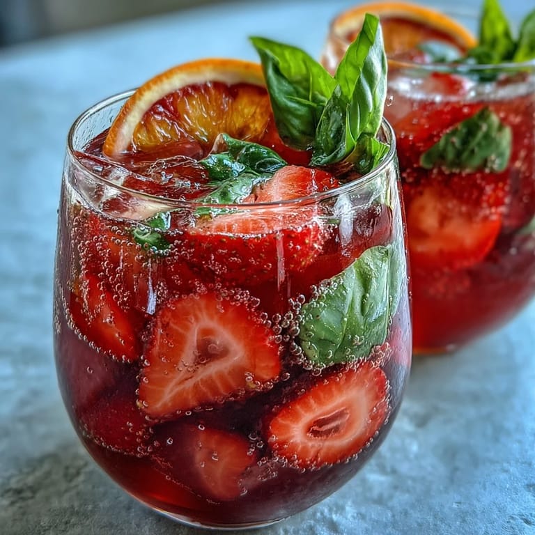 A couple of months ago, I made this mock sangria for a casual outdoor brunch with friends, and the colors in the pitcher became an instant conversation starter. Watching people try to guess the scent—was it mint, was it basil?—became half the entertainment. We passed around glasses filled with ice, the sound of cubes clinking promising refreshment, and it turned what could have been a regular morning into a celebration. Even the kids competed over who got the prettiest strawberry slice in their glass, and the basil leaf garnish made everyone feel fancy without any fuss.